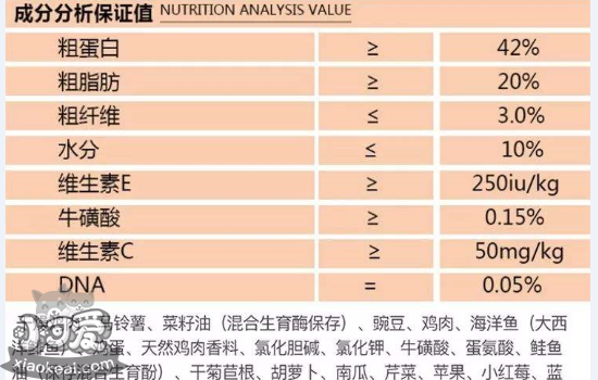 小编提示:碳水化合物。越低越好,猫粮里面一般不会标注碳水化合物的含量。